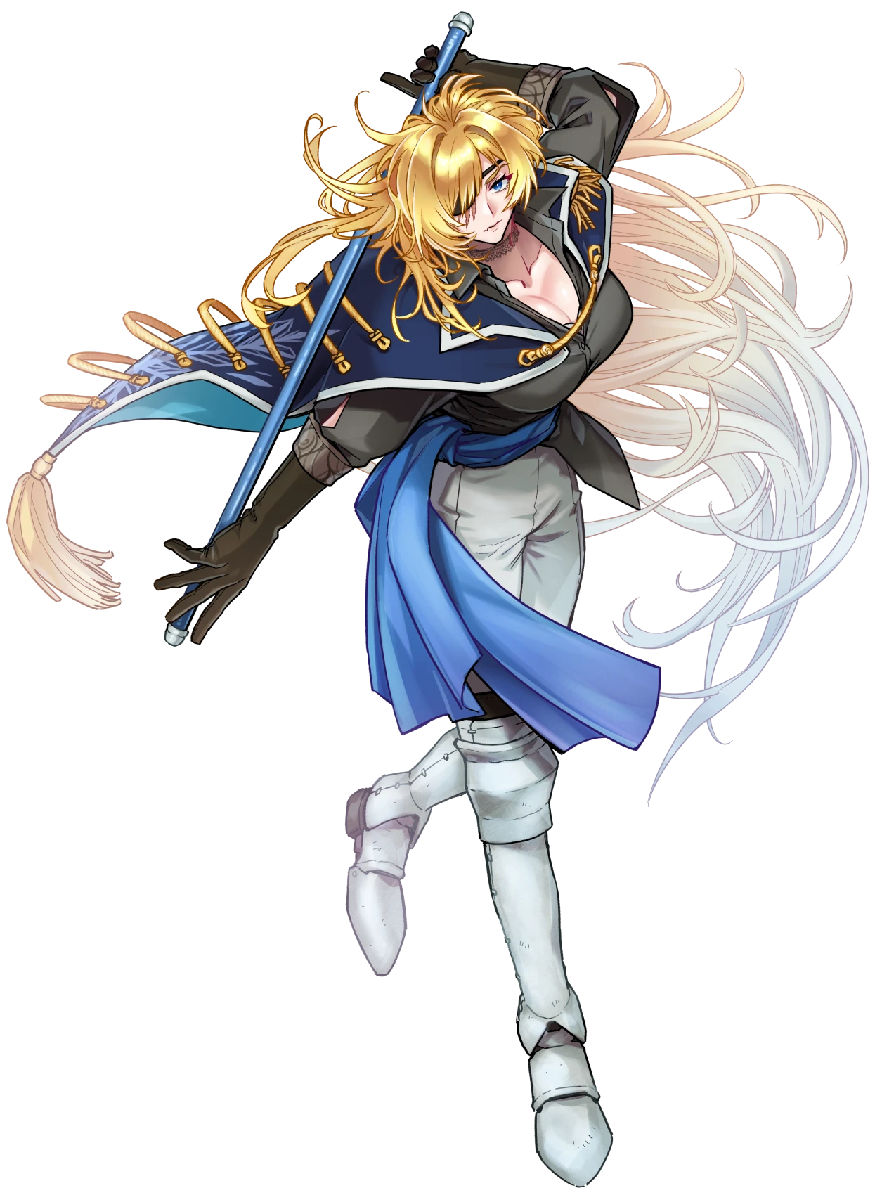 右目を裂くように刻まれた傷を隠すように眼帯を着けた、光を束ねたような金髪に蒼い隻眼の女のかたちを人間体とする。