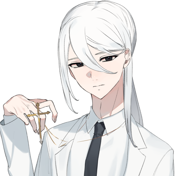 長めの銀髪を後ろで縛っている研究者の男性。ロザリオを常に肌身離さず身につけている。