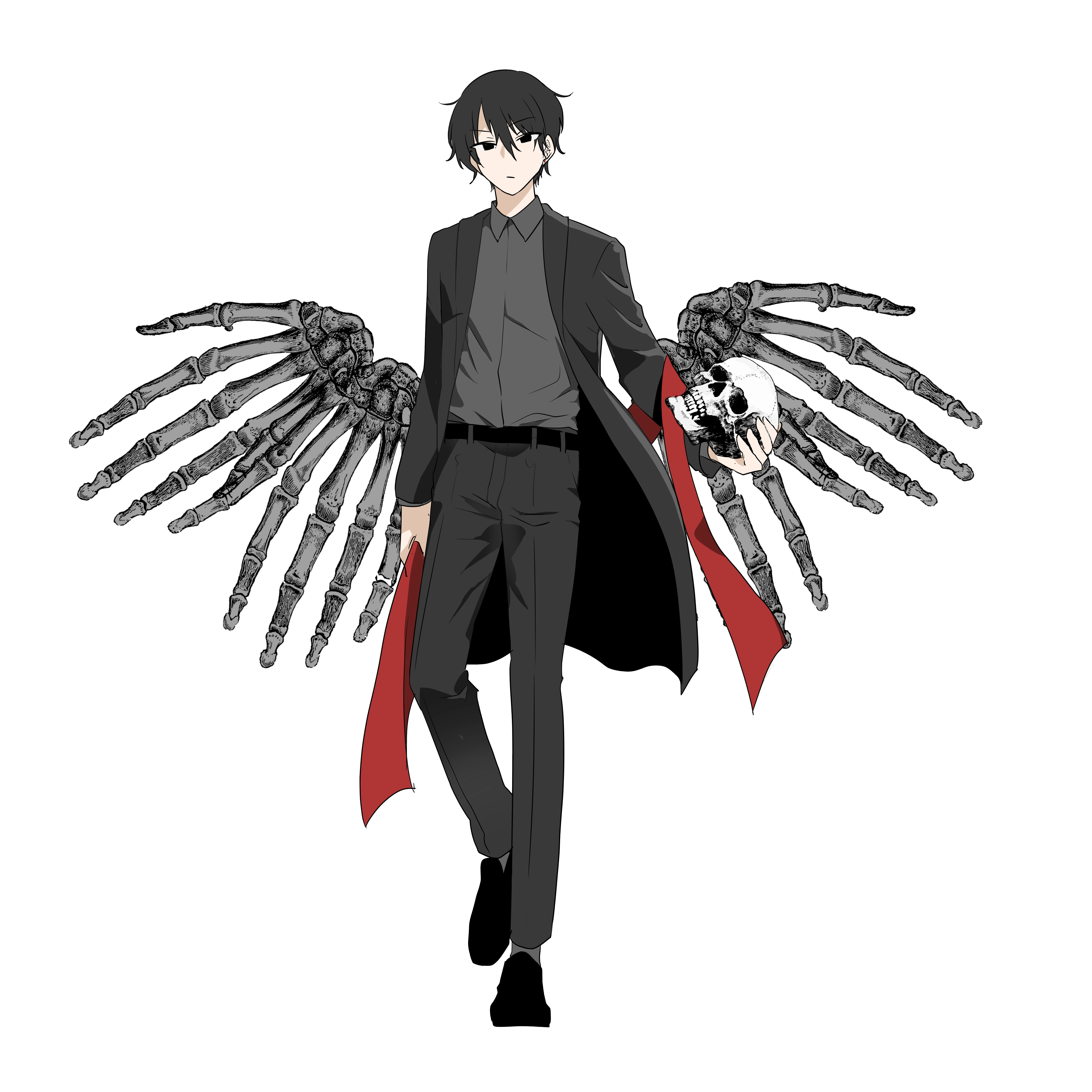 死神っぽい感じ。背中から生やした骨の腕を羽に見立てたい。
