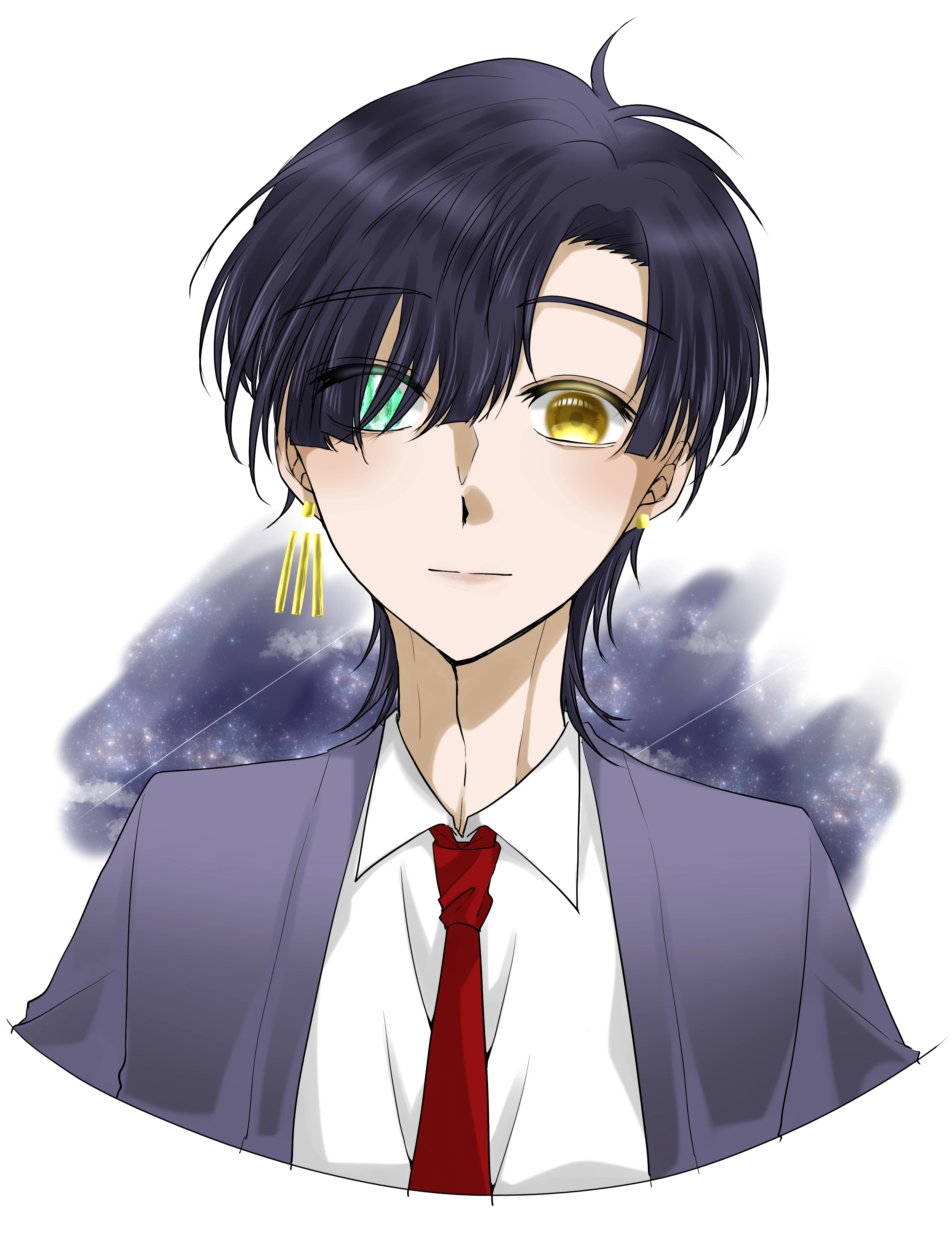 男にしては低く、女にしては高めの身長。短めの髪に、水晶と琥珀のオッドアイ。右目は義眼(賢者の石)。中性的な顔と体つき。たおやかな口調で優しげな笑みを浮かべ、涙脆い。自分の能力は別に大したことがなく、石である妹の力あってこそだと思っている。よく女性に間違われるが、声を聞けばすぐに分かる。