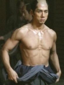 ちょんまげ。和服にマッチョで背は低め。