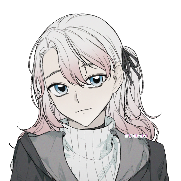 白色の髪に空色の瞳を持つ女性。毛先に桜色の薄いグラデーションがある。
