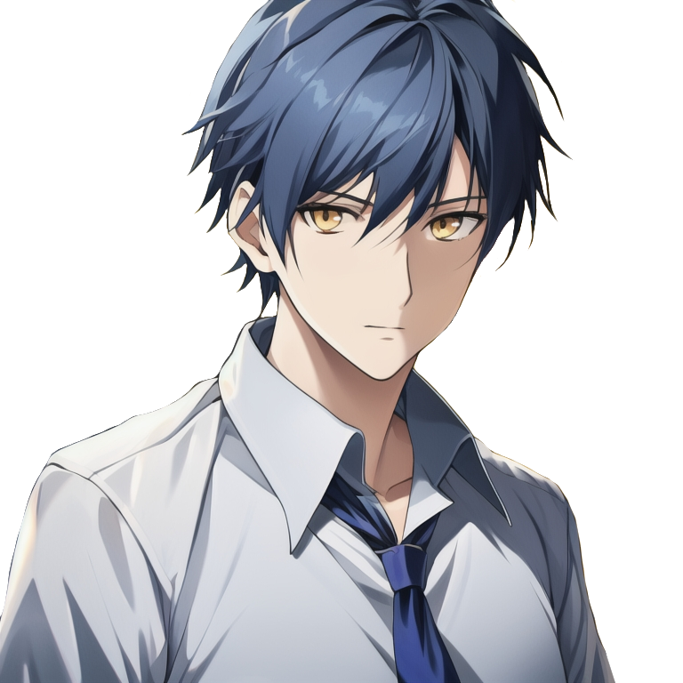 青色の短髪に黄色の瞳の青年。