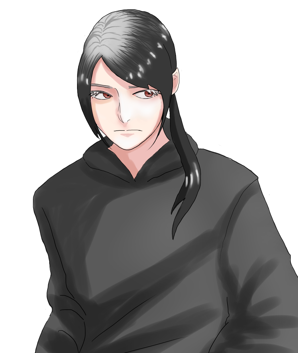 元は黒い短髪に黒い目。覚醒して銀髪赤目になった。