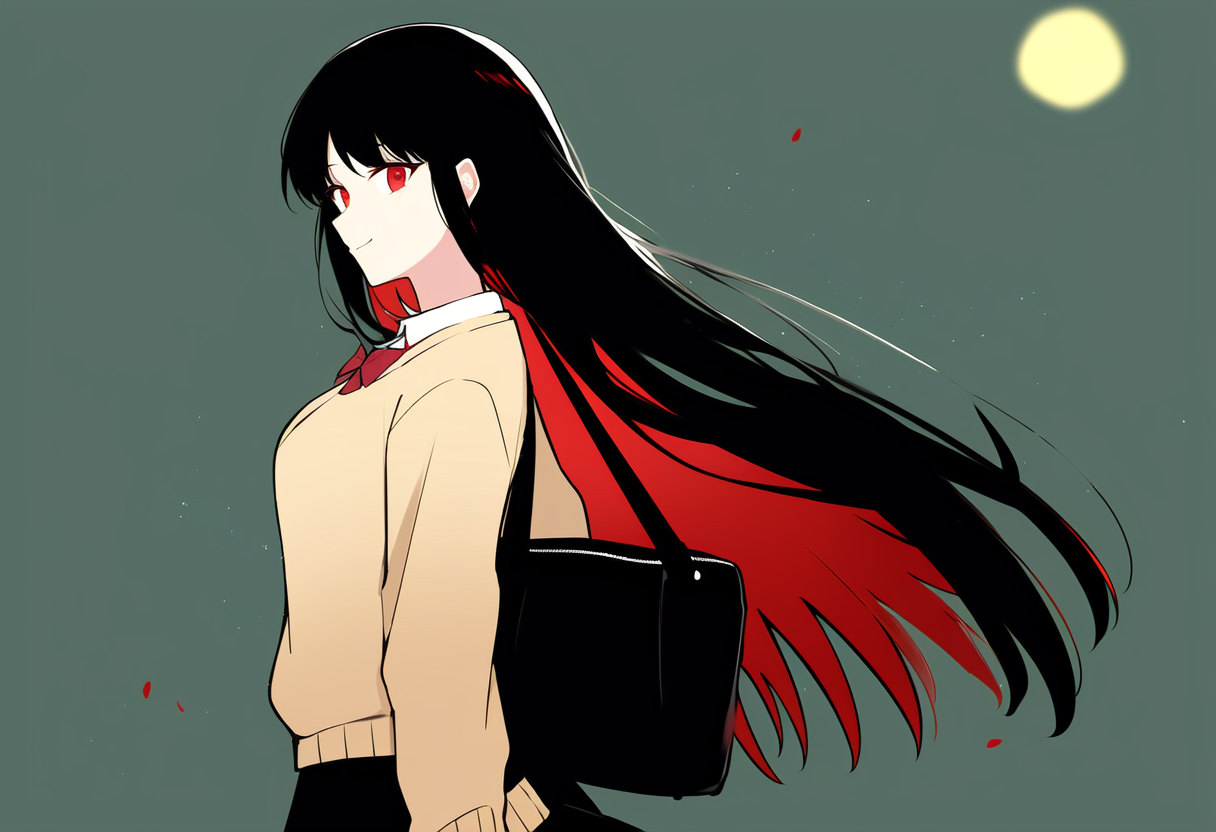 髪:黒色、腰まである長髪。オーヴァードに覚醒した際に赤色のメッシュが入る。
