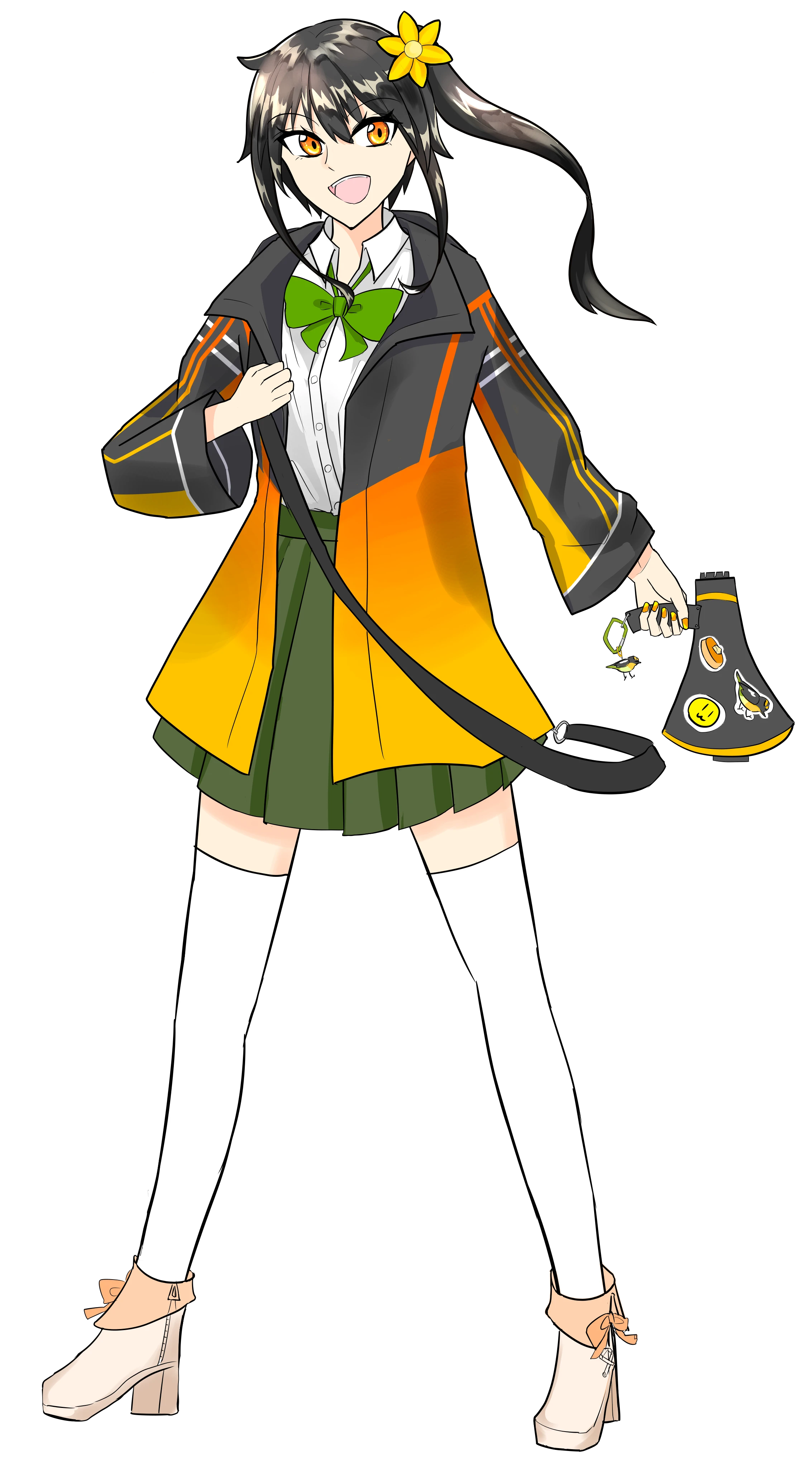 上着はオスのキビタキ、制服はメスのキビタキっぽく。