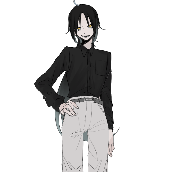 完全獣化の際は一角の角を持ち、紫煙の鬣をなびかせ纏う馬へと変化する。当然服は破けるため、安くて替えがきく服を愛用し、常に数枚持ち歩いている。