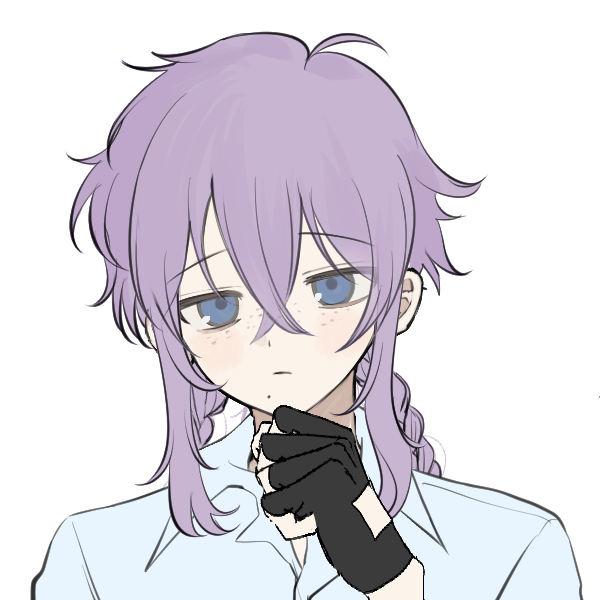 短い癖っ毛の薄紫色の髪と青色の瞳をしている。中性的な顔立ちをしており、時折性別を混同されることがある。