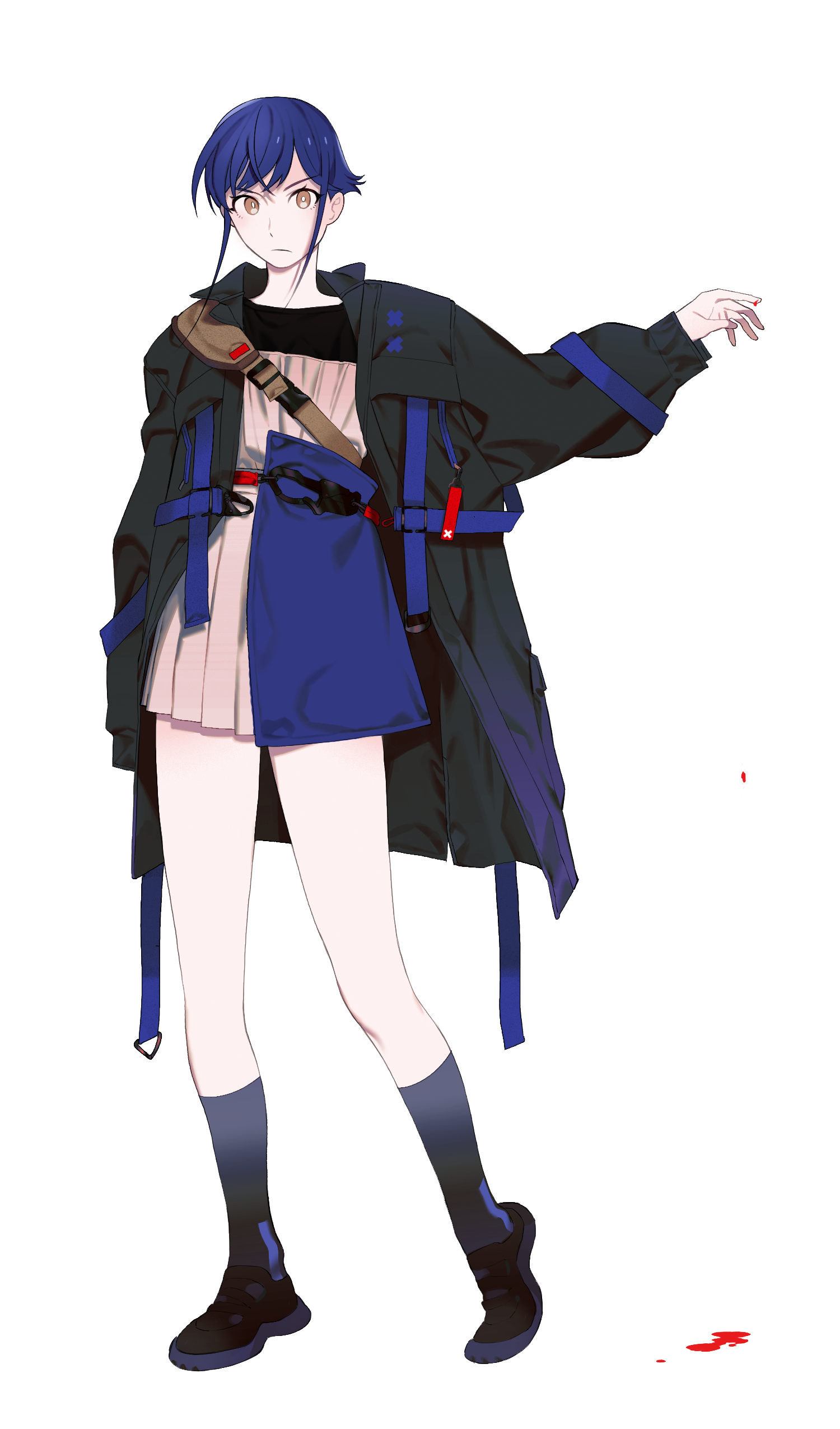 短い青い髪にベージュの目をしている,少し大きいジャケットを着ていた.