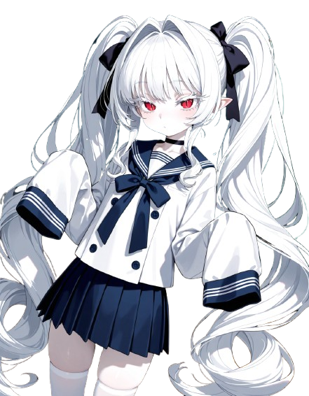 容姿:白髪のアルピノの儚げな美少女。