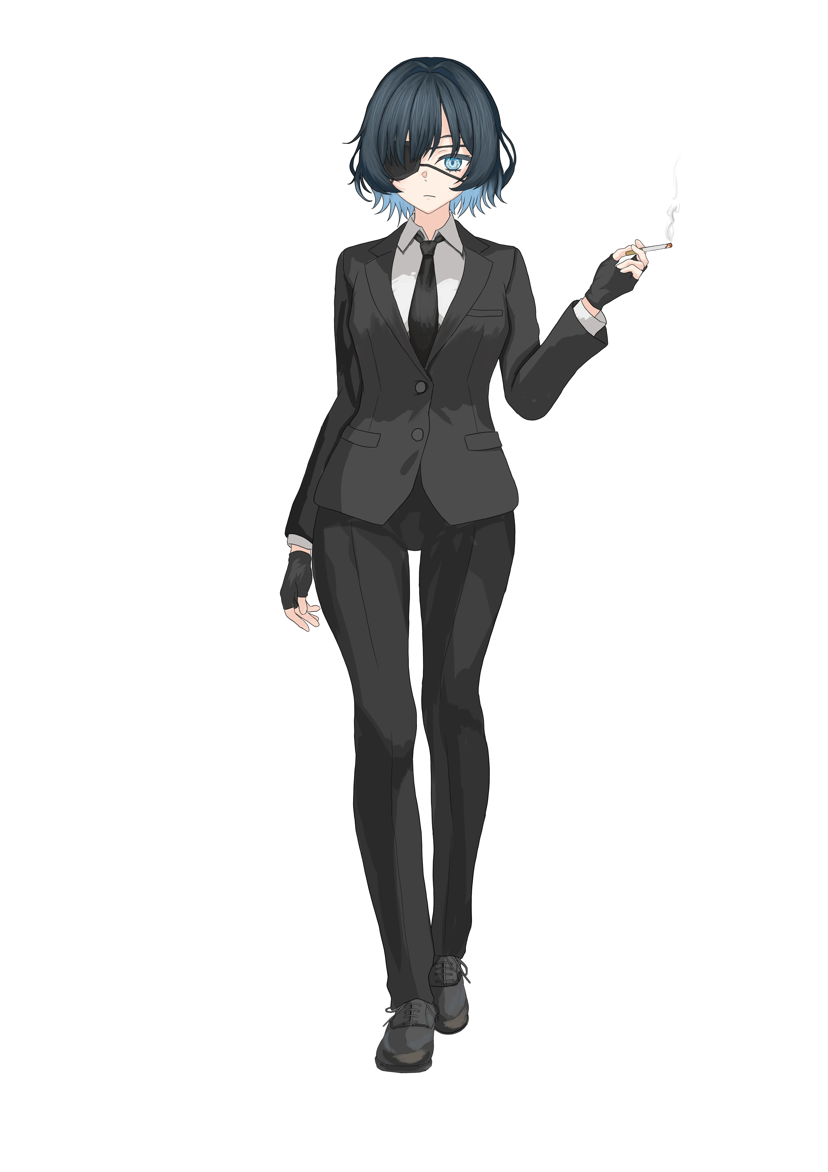 隻眼の妙齢の女性。