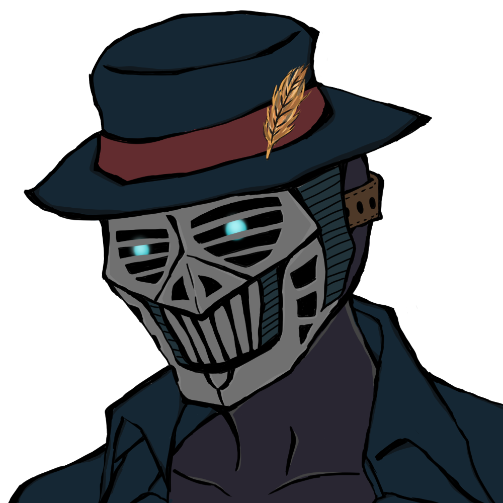体表が全て焼け焦げたような容姿をしているため普段から帽子、仮面、ボディスーツ、ロングコートで身を包んでいる。