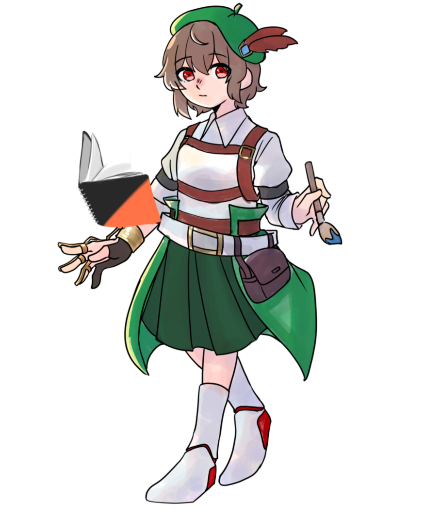 背負っている鞄にはスケブや自由帳、画材などが入っている。