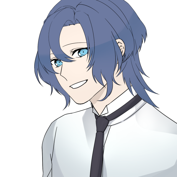 青い髪に水色の瞳。健康的な肌。高い背。白色のシャツにネクタイ、黒のズボン、革靴。