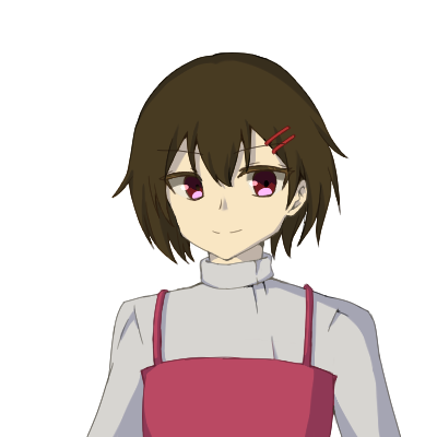茶色がかった黒髪のショートカットに、赤い髪留めをしている。