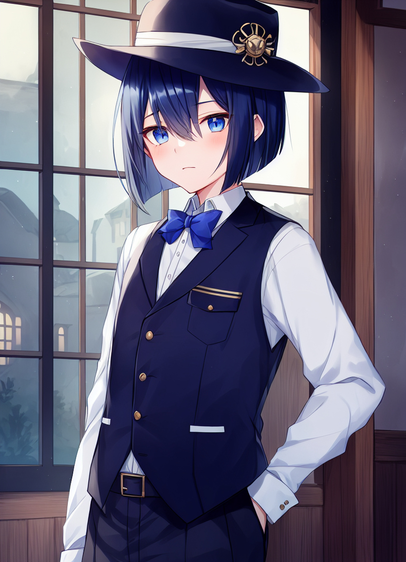 暗く青い髪の毛に青い瞳を持っている低身長の少年。