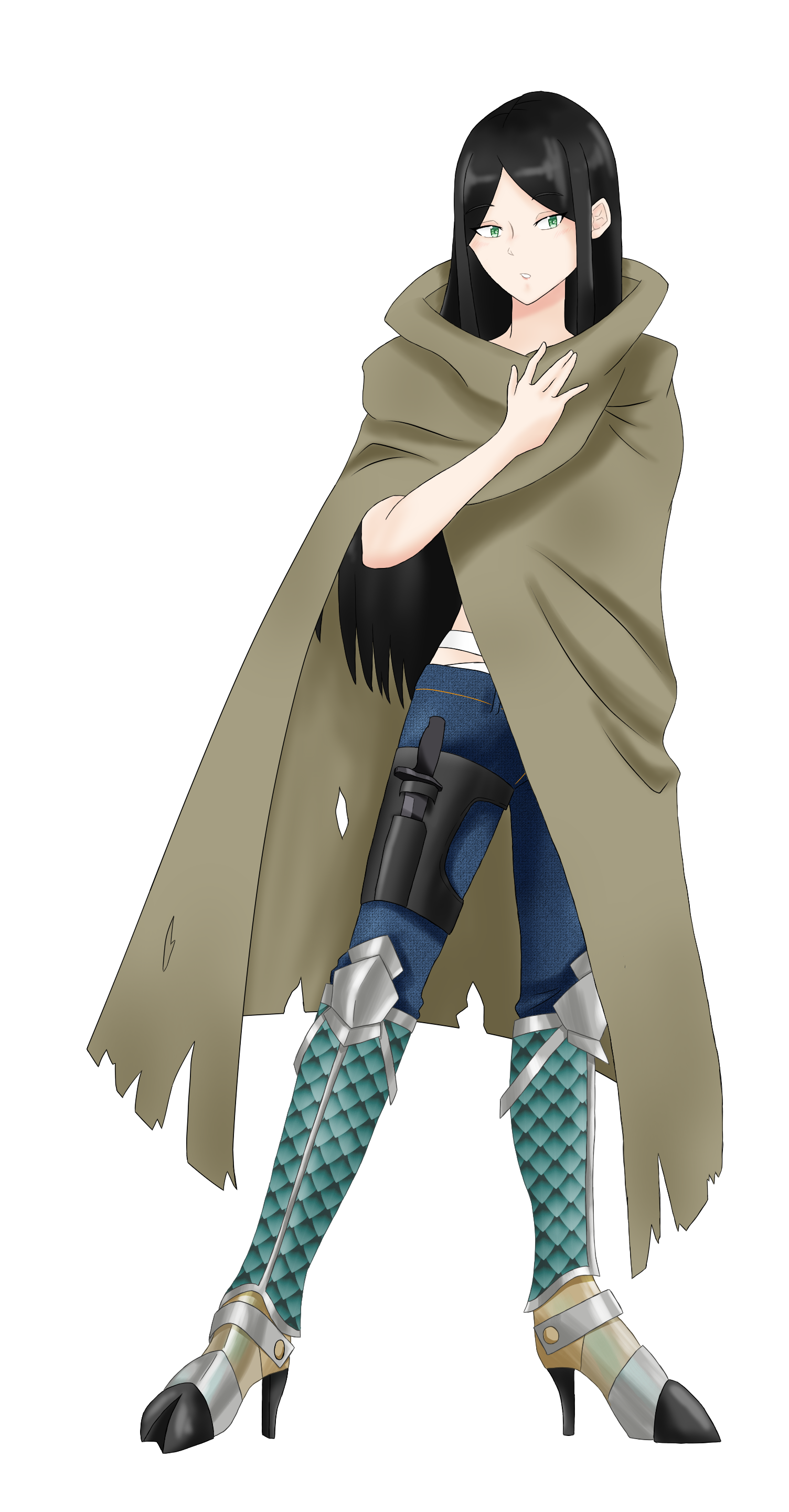 ヒーロースーツは魚の鱗をモチーフにした軽装の鎧にマントを羽織った姿。