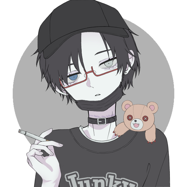 猫背気味。パーカーやTシャツ、ジャージなどのダボダボした服装を好む。
