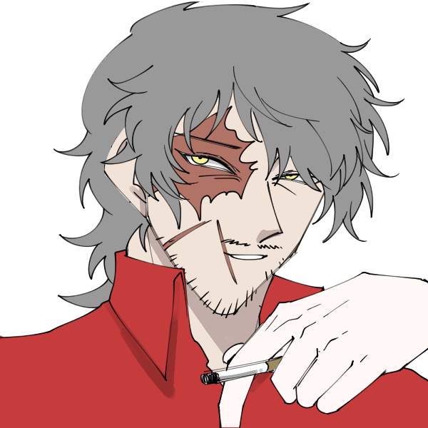 昔の飛行機墜落事故によって顔面にそこそこひどい傷があるがハッタリがきくからとよく見えるようにしている。