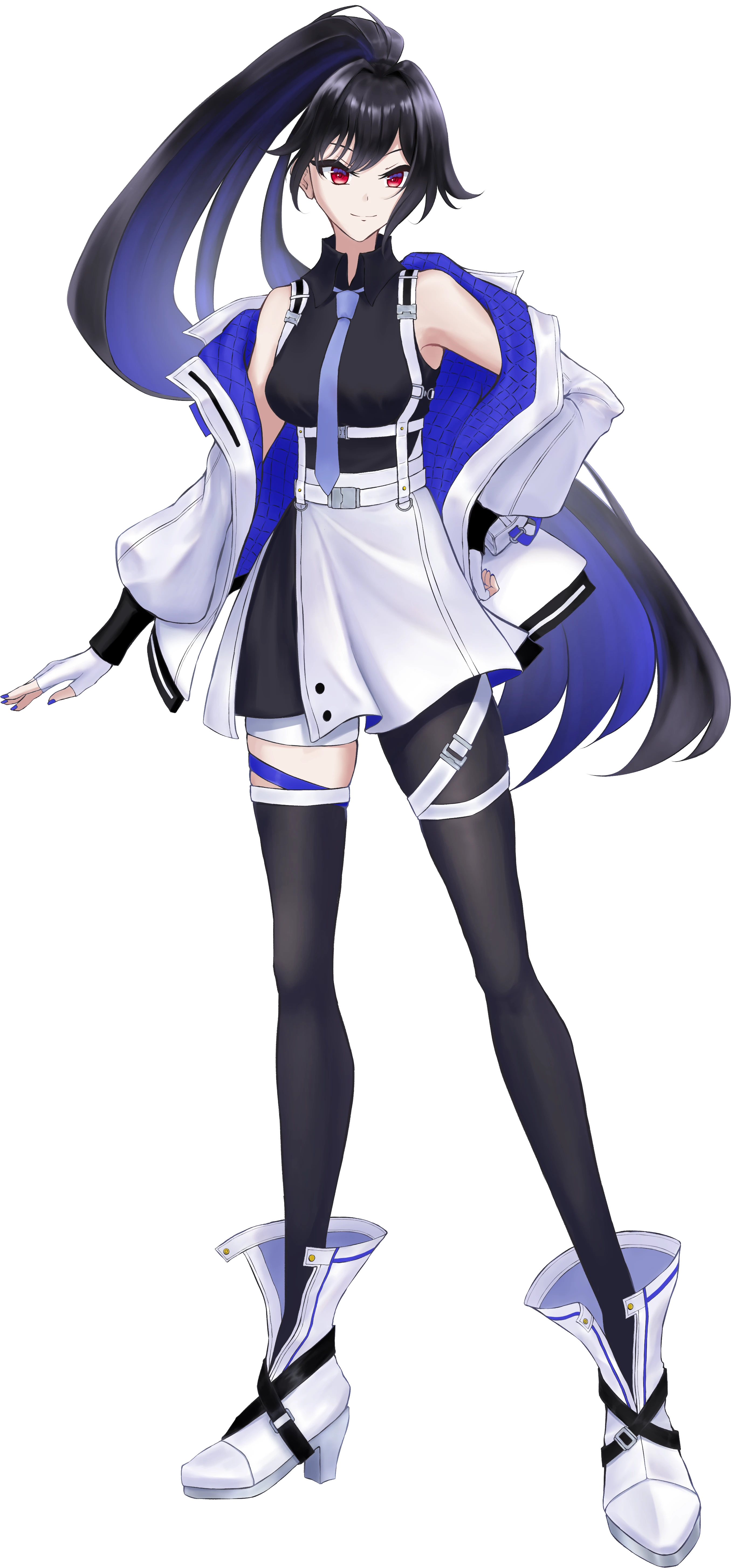 常にひとまとめにしている濡れ羽色の長髪、赤みのかかった瞳とやや色白な肌が特徴的。
