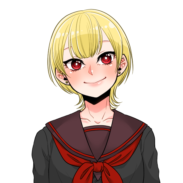 次に見た目。金髪赤目。何がとは言わんけど宗教上避けてきた組み合わせをします。