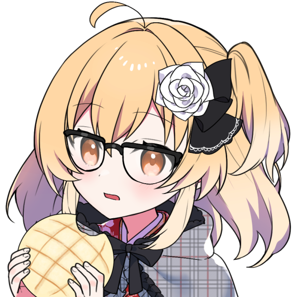 大正ロマンな和服(袴風スカート)に白のパーカーフード。オレンジがかった赤毛のセミショートで左側に薔薇付シュシュでサイドテールとアホ毛が生えているのが特徴。メガネは養母への憧れ+かっこつけなので伊達。