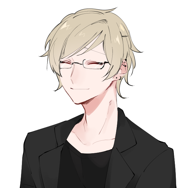 外見はガタイの良い長身。薄い色の髪、眼鏡に糸目という美青年。