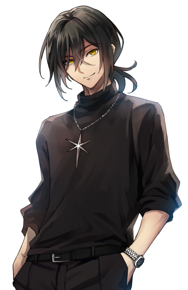 黒髪に金色の瞳を持つ少年。髪を後ろで一纏めにしているのが特徴。