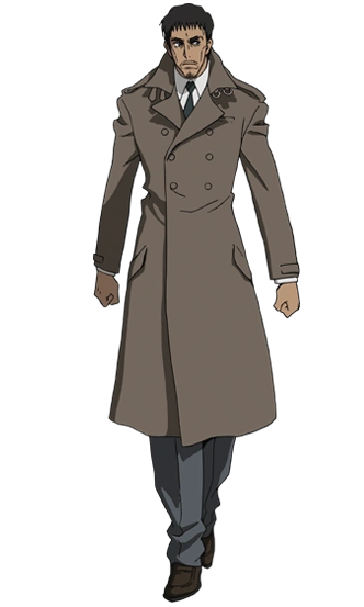 焦げ茶色の体より一回り大きなコートに身を包んだ男性。顔はやつれており目にはクマがある。コートのおかげで堂々とした大きなシルエットになってるが、実際は病弱で華奢な体型である。顔の渋さと釣り合わせるために大きなコートを着ていて、脱ぐことは殆ど無い。