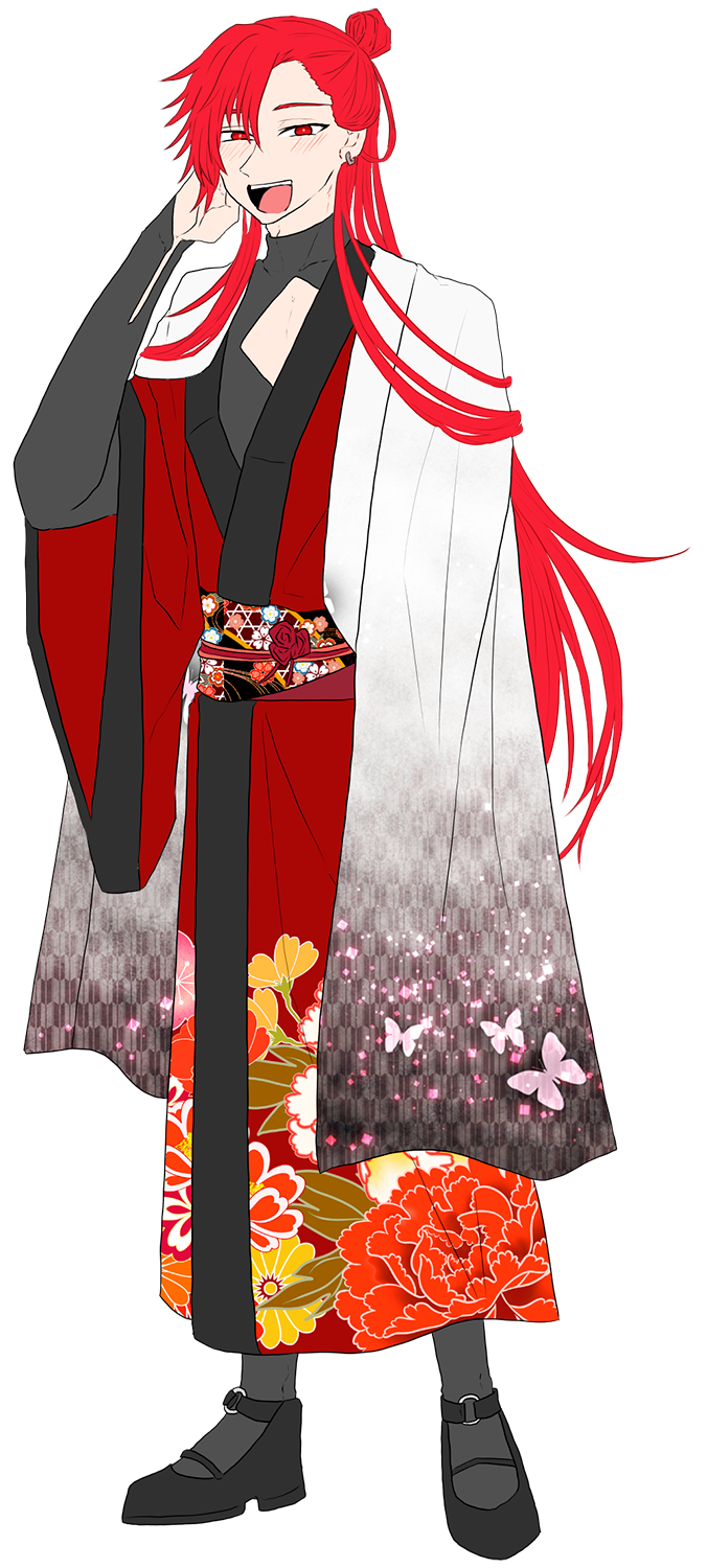髪は実験体として生まれた頃から赤髪だったらしい。長髪だが、結ぶのも洗うのもめんどくさいから嫌い。でも長髪赤髪だとなんかモテるからそうしてる。