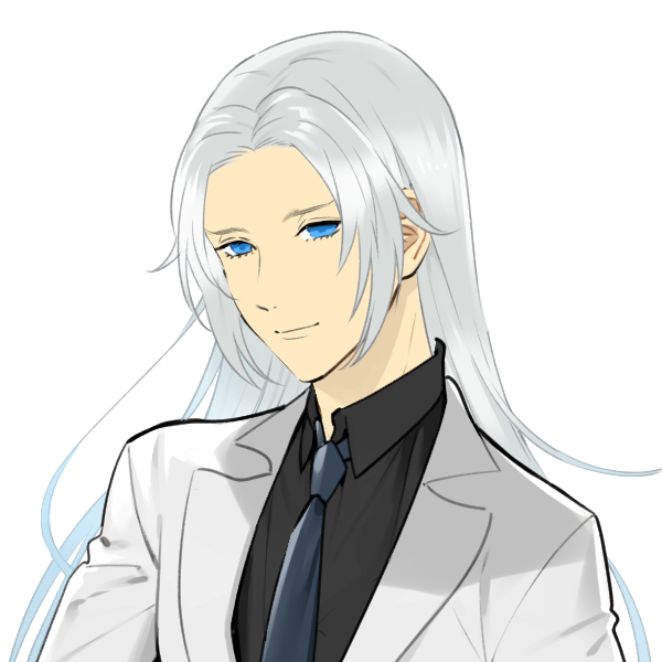 長髪、髪の色は白。