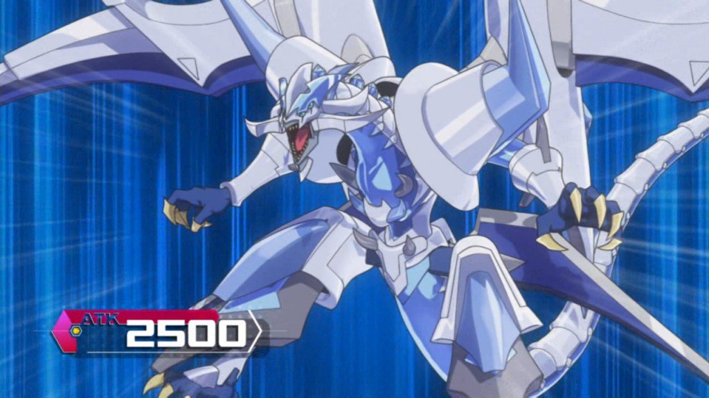 “紫電一閃!未知なる力が飛竜乗雲となる。シンクロ召喚!降臨せよ!”サイバース・クアンタム・ドラゴン