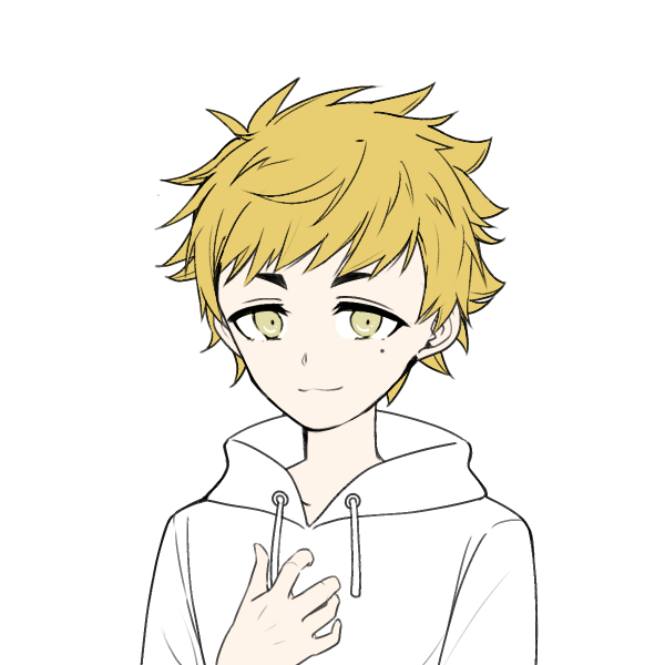 金髪のショタ。ノースリーブの白いパーカーにジーンズをはいている。