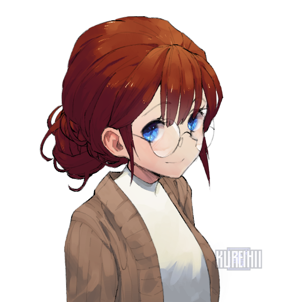 赤みがかった栗毛を後ろで束ね、丸眼鏡をかけている