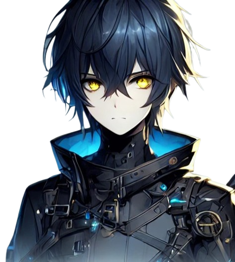 濃紺に青のメッシュ、ツヤのある丸みのある髪型。猫目で、思考が読めない。多機能なガントレットとブーツをはいている。