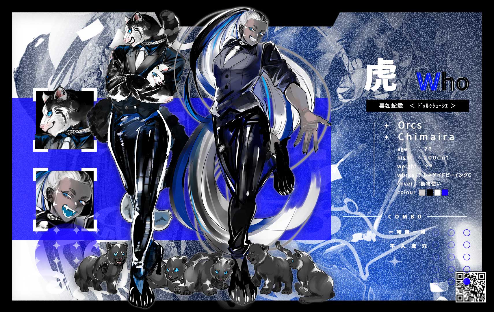 2m強ほどの身長の虎頭の人間。尻尾がふたつある。
