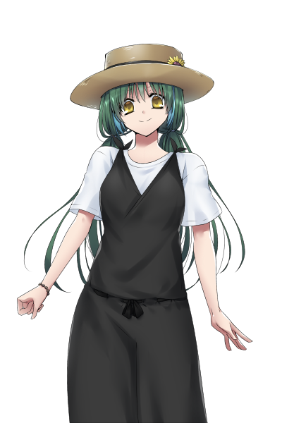 地味だが結構キレイな顔立ち。緑の髪を二つ結びにしたお下げ。ナチュラルメイク。胸が大きいが腰回りの肉付きも良い。