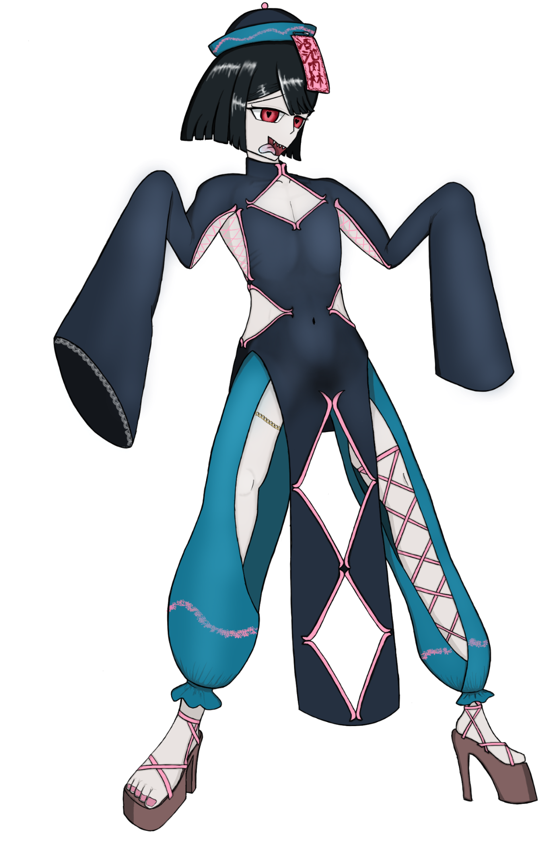 黒髪赤目おかっぱ女たらし美少年キョンシー。