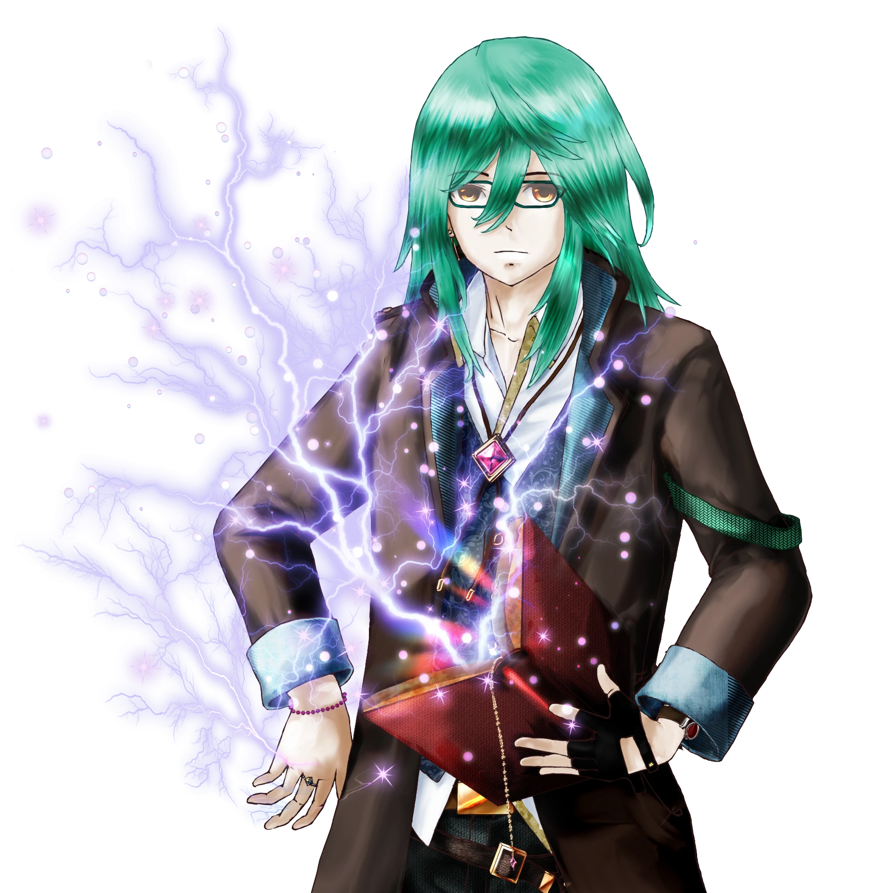 魔導書型ソウルウェポン&指輪(トルマリンとアズライト)を立ち絵に書き込んでいます。
