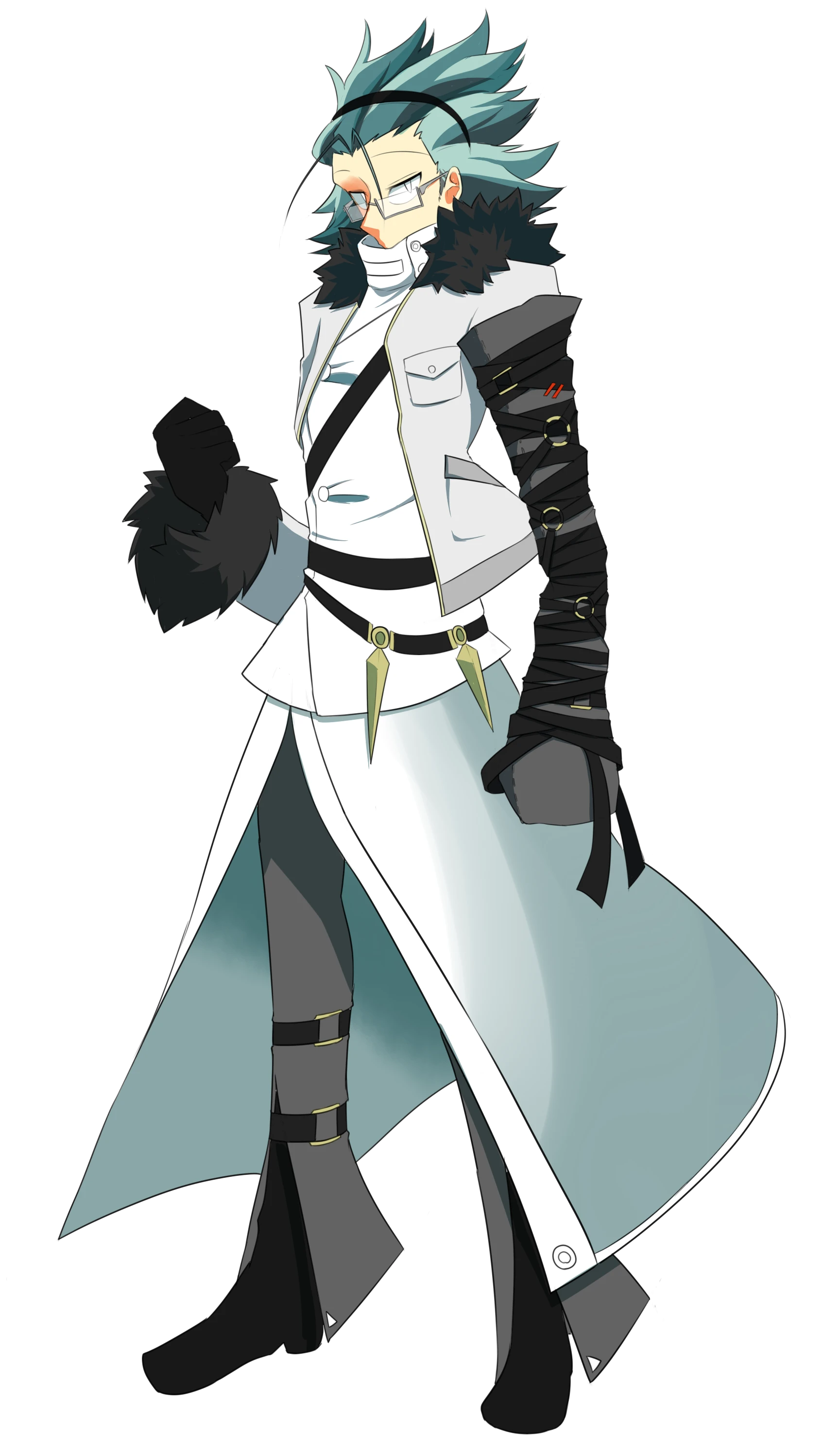 常に防寒着を身に纏い、左腕を拘束具で覆った大柄な男性。