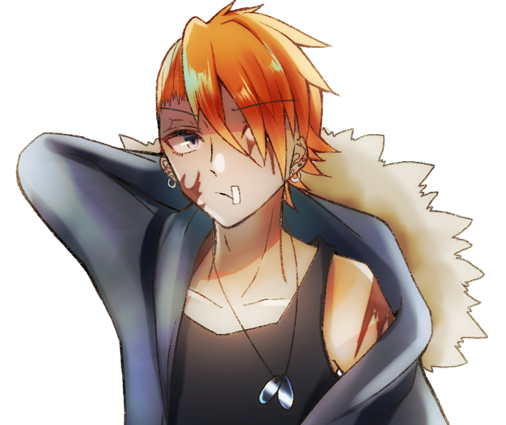 髪を染めてピアスをがっつり開けている。ドッグタグはいつも必ずつけている。