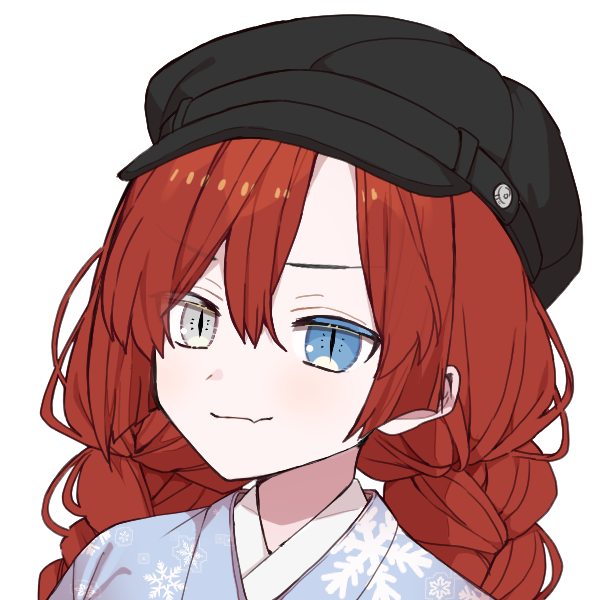 2月11日生まれ(自称)。深紅のツイン三つ編みと、青と白のオッドアイが特徴的な中学生くらいに見える女の子。