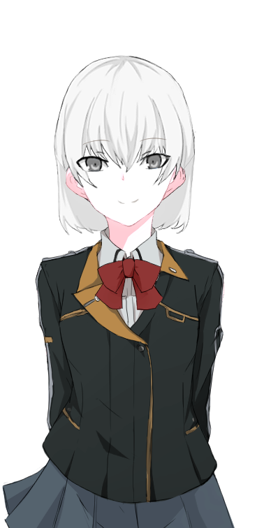 容姿:色素が抜け落ちた白い髪と黒い瞳を特徴としたやせ細り気味な少女。