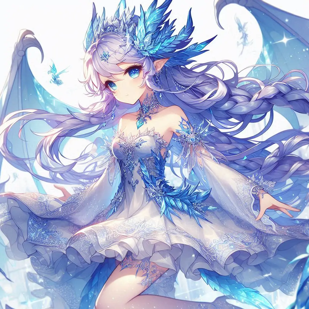 - 氷のような水晶が鱗のように敷き詰められた龍の少女