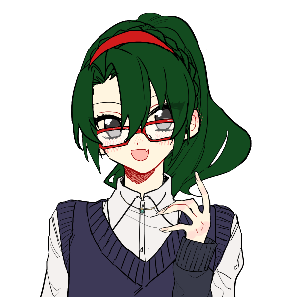 眼鏡は伊達メガネ。髪の色と眼鏡の色で、目に視線を向けるための小道具
