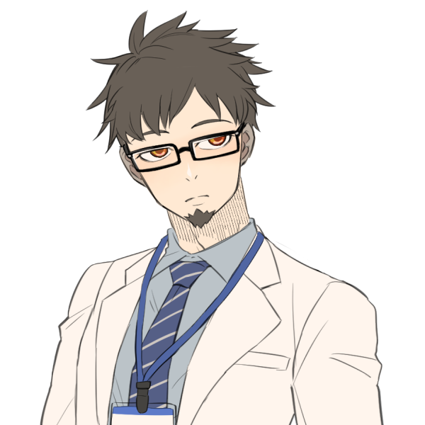 白衣を着た少し童顔の男性。