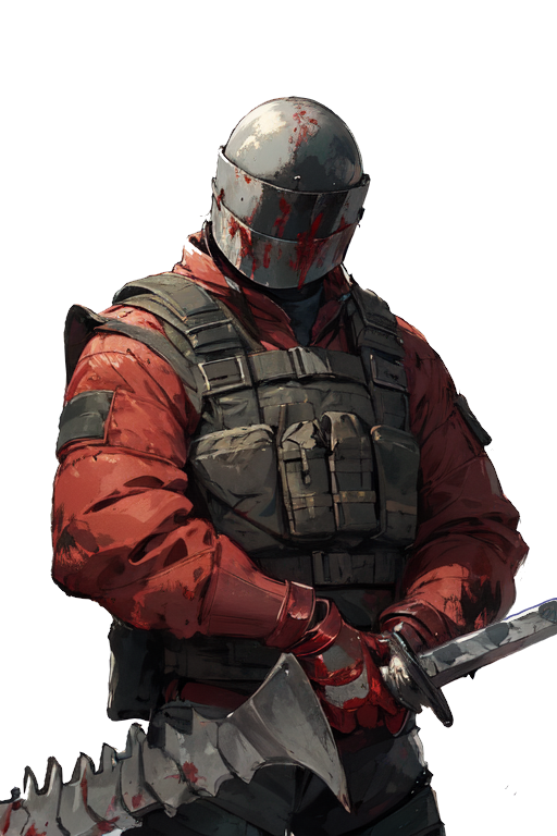 赤い対爆スーツ身を包んだ180㎝ほどのフルフェイスヘルメットの剣士