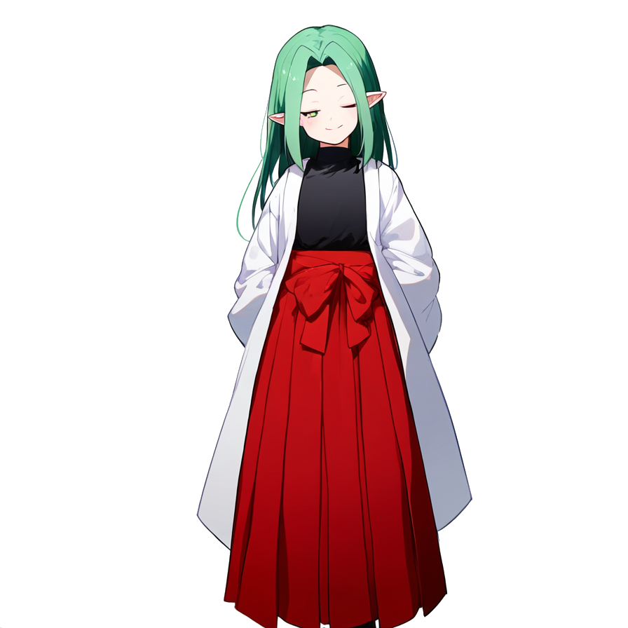 黒の上衣に緋袴、祝福された純白の羽織のエルフ。