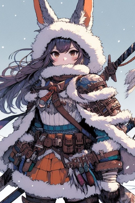 雪原の中、弩弓での狩りとサバイバル技術を頼りに戦う少女である