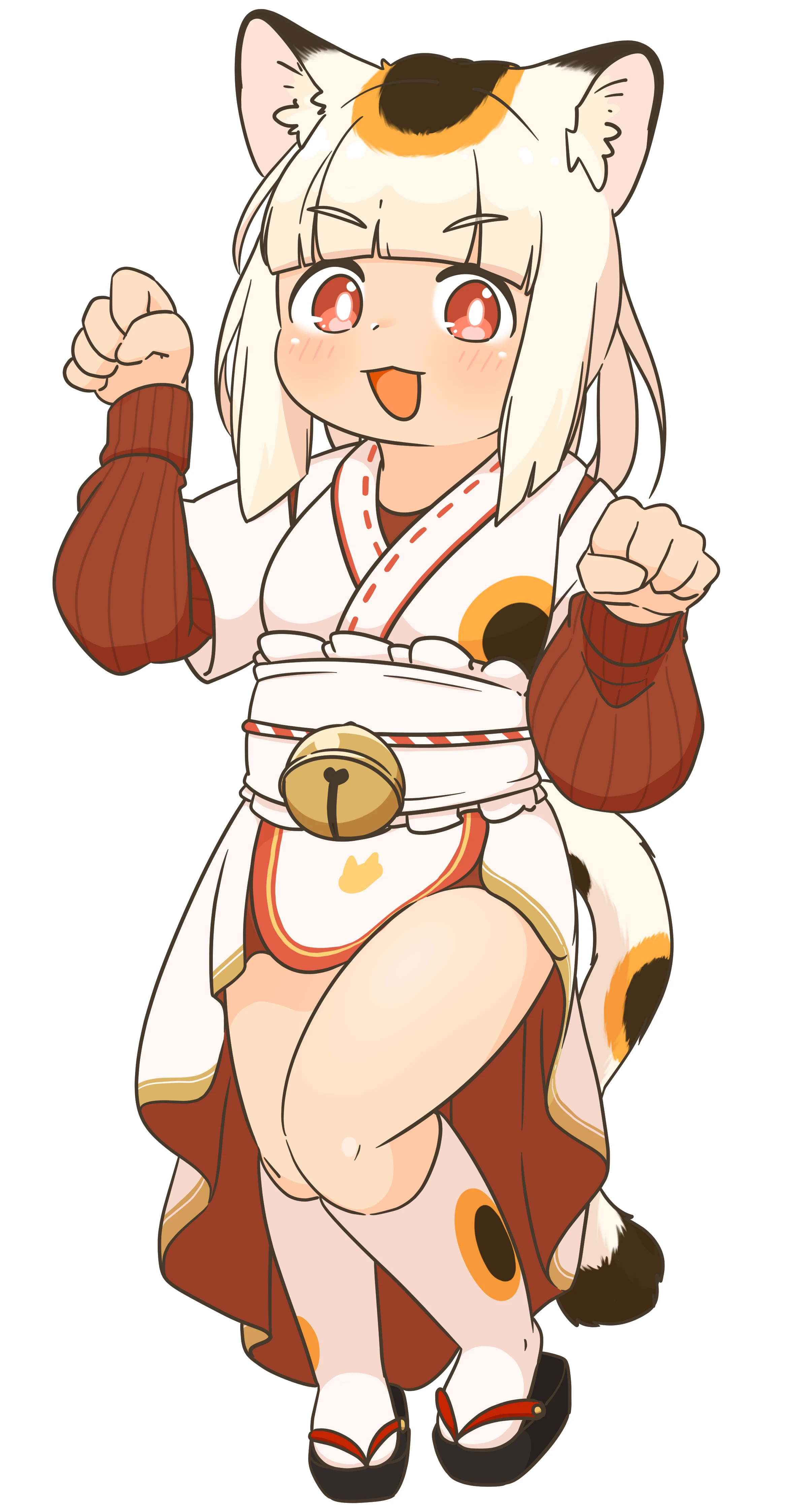 『猫カフェ ねこみやこ』で看板娘を務めている、招き猫のマモノ。いつも店の入口付近に座り込んでは満面の笑みで客を呼び込み、愛想を振り撒いている。仕事に熱意を持つ優秀な店員ではあるが、店に招き入れるまでが自分の仕事だと思っている節があるため、接客以外の業務、洗い物や裏方の事務といったものはあまり積極的に行おうとはしないのが珠に瑕。猫のお世話はする。